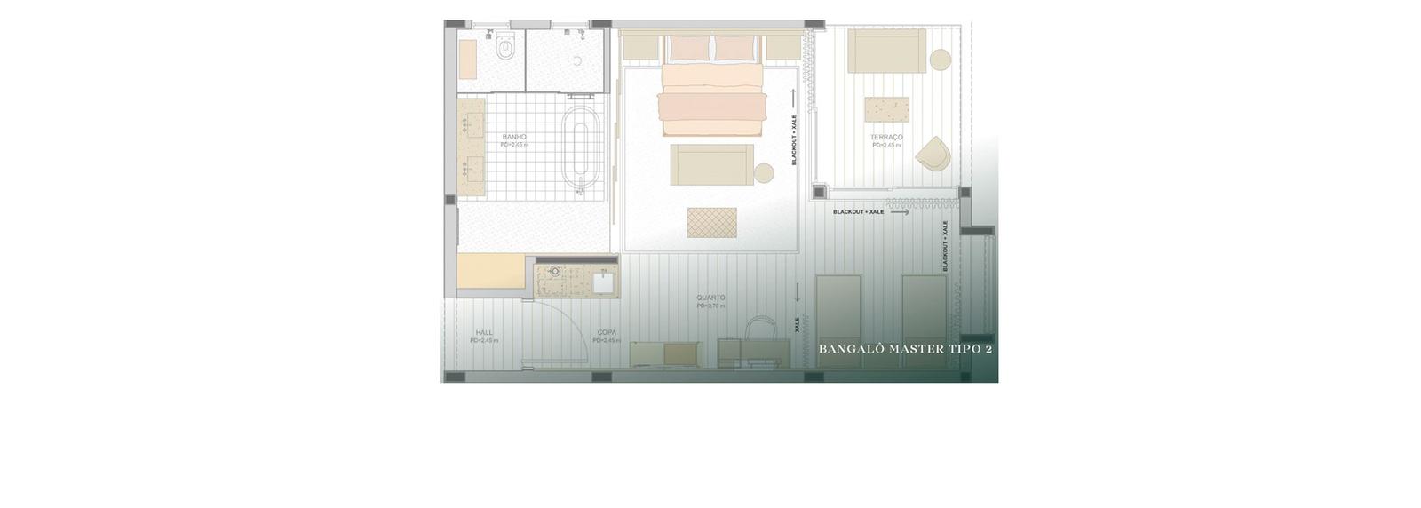 Bangalô Master (divisão de ambientes com cortina)