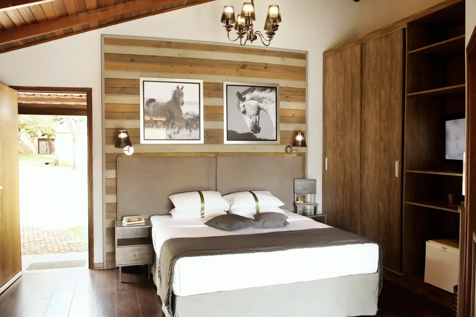 O quarto também conta com: : Ar-condicionado/ Smart TV / Telefone / Frigobar / Filtro de água / Chaleira Elétrica / Secador de cabelo/ Cofre / Banheiro / Varanda. *Algumas numerações dessa acomodação aceita pet de pequeno porte, mediante o pagamento de taxas, consulte os valores com o atendente.