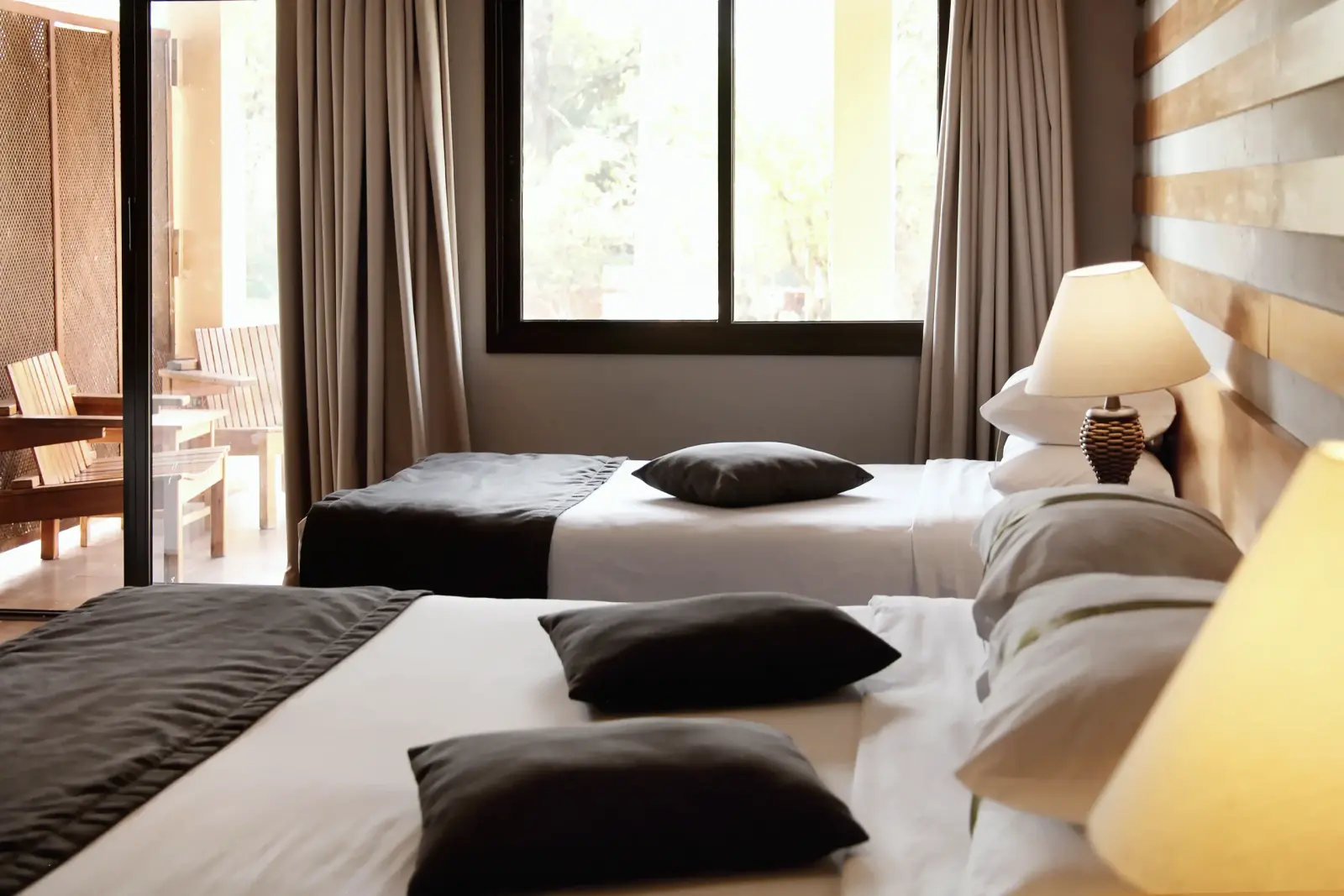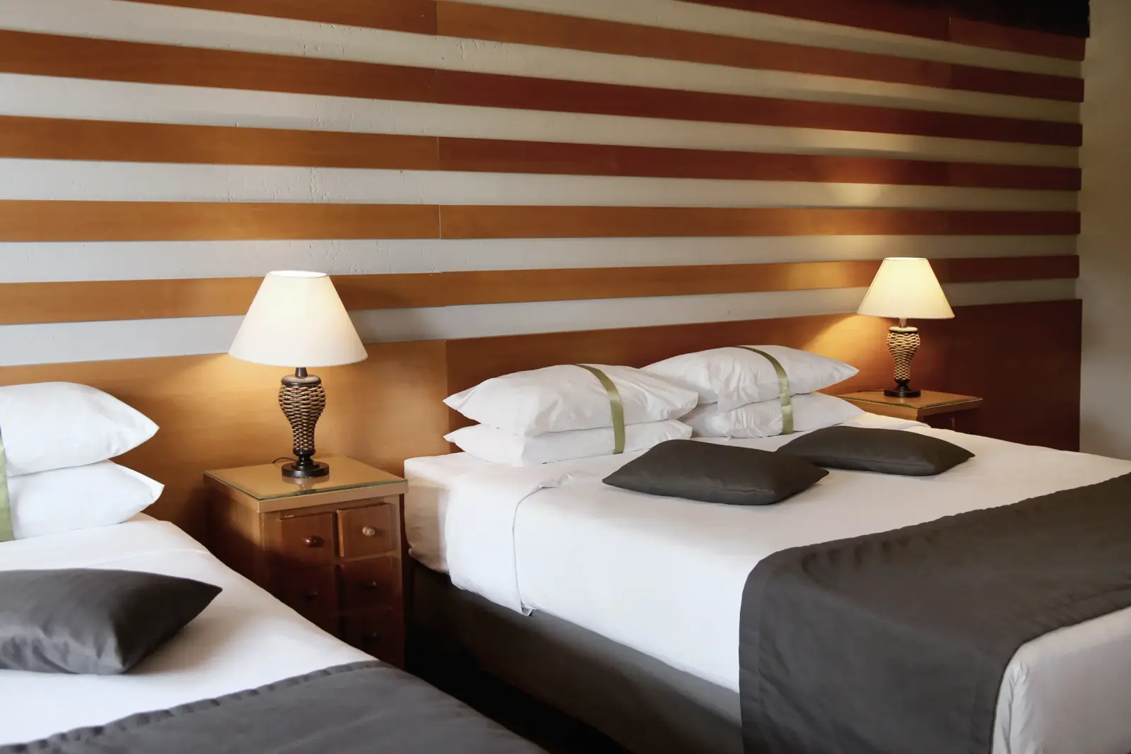 Nossos apartamentos contam com uma vista privilegiada, comportando até 4 pessoas com metragem total de 33 m². Temos 2 acomodações em piso térreo.