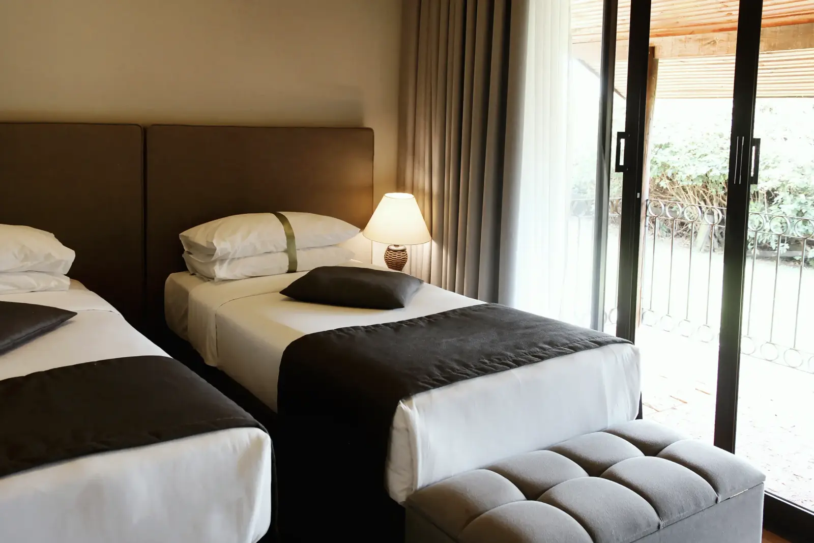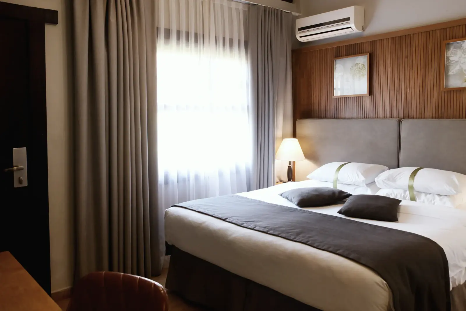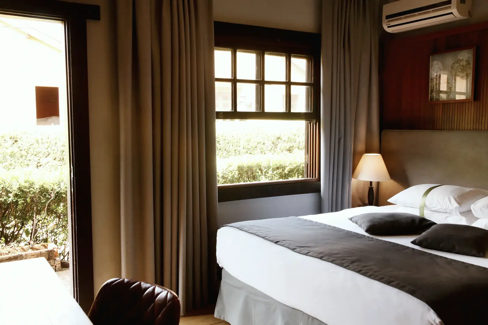 O quarto também conta com: Ar-condicionado/ Smart TV / Telefone / Frigobar / Filtro de água / Chaleira Elétrica / Secador de cabelo/ Cofre / Banheiro / Varanda. *Essa acomodação aceita pet de pequeno porte, mediante o pagamento de taxas, consulte os valores com o atendente.