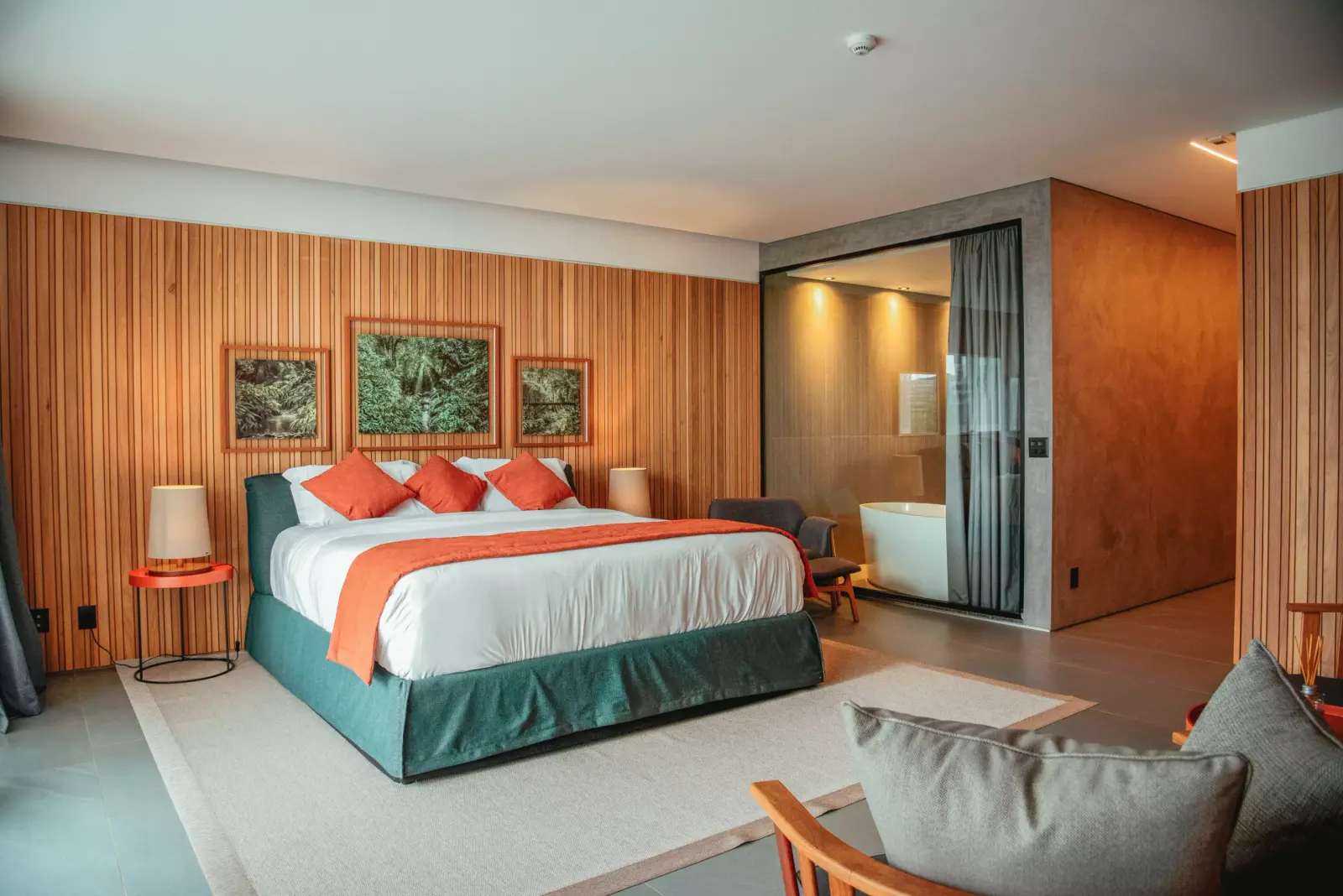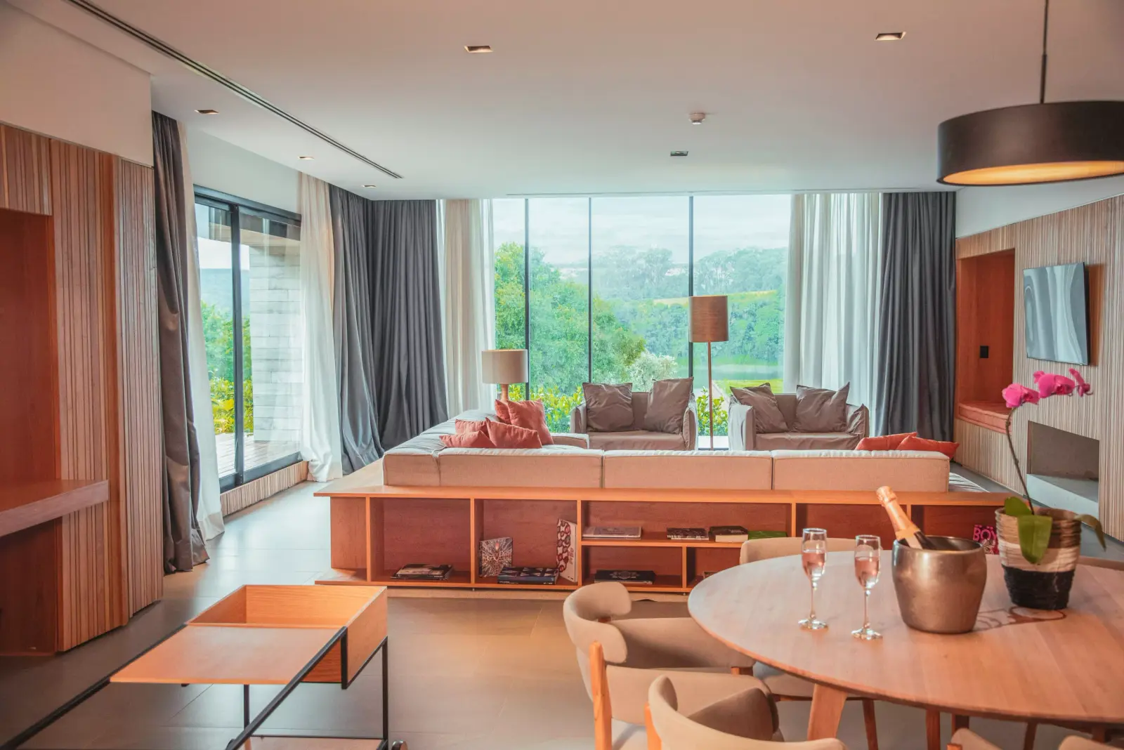 Localizada no Bloco Península, nossas Suíte Presidencial possui vários diferenciais que tornam a sua experiência ainda mais incrível, comportando até 5 pessoas com metragem de 165 a 226m². Temos 01 acomodação nessa categoria em segundo piso, acesso por elevador ou escadas.