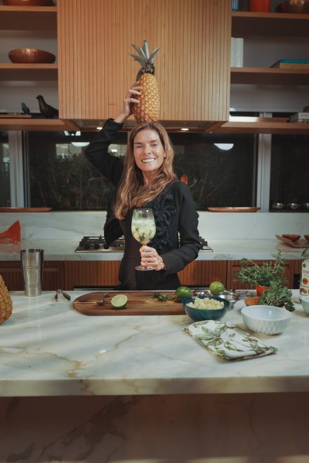 Colocar em um liquidificador, o vinho, o abacaxi e o leite condensado. Bater bem e depois servir em uma taça com gelo.