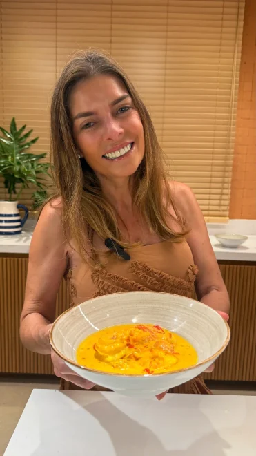Em uma frigideira aqueça o azeite e grelhe os camarões com um pouco de sal. Reserve. Em uma outra panela coloque o creme de leite e o vinho branco para aquecer, quando estiverem aquecidos incorpore os queijos aos poucos, acrescente a noz moscada e a pimenta do reino. Misture o leite e o amido de milho e junte a preparação de queijos. Sirva a preparação de queijos com os camarões, brócolis e tomates cerejas. Bom Apetite.