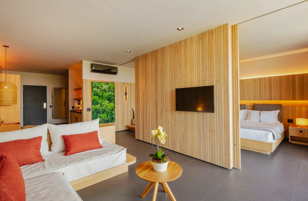 With a private sauna and a balcony over 16 m², this suite offers the perfect setting to unwind and enjoy the surrounding nature.