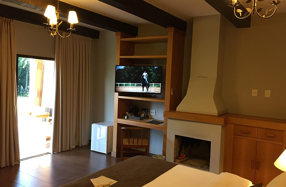 Ideal para noites românticas ou momentos em família, o calor da lareira cria uma atmosfera envolvente e memorável em qualquer estação.